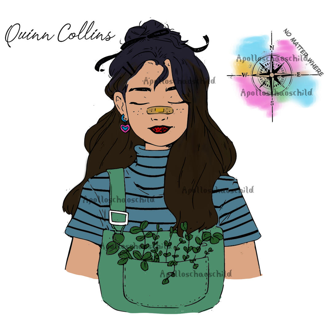 Quinn's life has been marked by a series of significant events and challenges, starting with the loss of her mother, a marine biologist, when she was just 8 years old. Tragically, her mother died in a submarine accident caused by a system malfunction, leading to the loss of oxygen and her eventual drowning.Following her mother's death, Quinn entered the foster care system and experienced a tumultuous period, moving between different homes until she turned 10. At that point, a relative, who happened to be her mother's sibling, came forward and took her in, providing a stable and loving environment.When Quinn reached the age of 12, she was involved in a car accident while crossing the street, resulting in a diagnosis of epilepsy. This condition added a new layer of complexity to her life, as she grappled with managing seizures and adjusting to the challenges they presented.At the age of 13, Quinn faced another health hurdle as she was diagnosed with POTS (Postural Orthostatic Tachycardia Syndrome), a condition that causes an increased heart rate and other symptoms when transitioning from lying down to standing. This further compounded her daily struggles and necessitated adjustments to her lifestyle.Quinn's life took a magical turn when she reached the age of 15. Through some mysterious guidance from her divine parent, she discovered Archie, a loyal and protective hellhound. Their meeting was orchestrated by Quinn's father, who was nudging them towards each other for their mutual protection. This bond proved essential when a monster targeted Quinn, and Archie courageously defended her, fending off the beast.Quinn's Untie, her mother's nonbinary sibling, possessed the ability to see through the mist, much like her mother. They witnessed the encounter with the monster and realized that Quinn's safety was at risk. Earlier, when Quinn was 12, a god had attempted to seduce her Untie but mistook Quinn for their child, leaving them alone. However, the god informed them of the existence of a safe haven called Camp and urged them to bring Quinn there.Recognizing the danger that Quinn faced and observing Archie's protective instincts, her Untie made the decision to send her to Camp Half-Blood. They understood that this camp, specifically designed for demigods like Quinn, would provide the necessary protection and guidance in her unique circumstances.Throughout these trials and hardships, Quinn held a steadfast knowledge of her true identity. She always knew she was transgender and, with the unwavering support of her Untie, she was able to begin her journey of self-discovery and transition. At the age of 14, Quinn started hormone blockers and eventually began taking estrogen, affirming her identity and bringing her closer to living authentically.╕═════⸱࠾♕࠾⸱═════╒