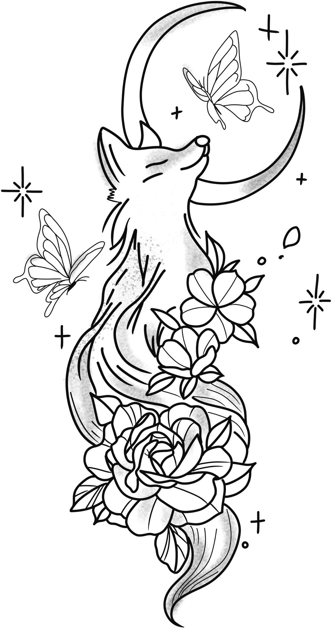 this is a drawing i did of quinn alongside her tattoo, which is a compass rose with the words "No Matter Where."