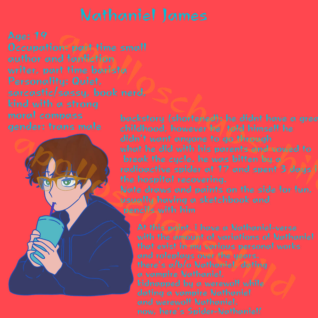 I need google drive for more important things than keeping track of my OC's so, I've decided to keep them here and have them easy to navigate . My demigod and Riordanverse OCs are all sorted by godly parent, so click on the button associated with their godly parent to find them. For now, these are the only oc's i have but there may eventually be other oc's for other fandoms. When the time comes, they will be sorted by fandomSome oc's have buttons on top of their bio linking them to other characters who have part in their backstory, such as twins, triplets, full siblings or half siblings with the same mortal parent to easier navigate families.